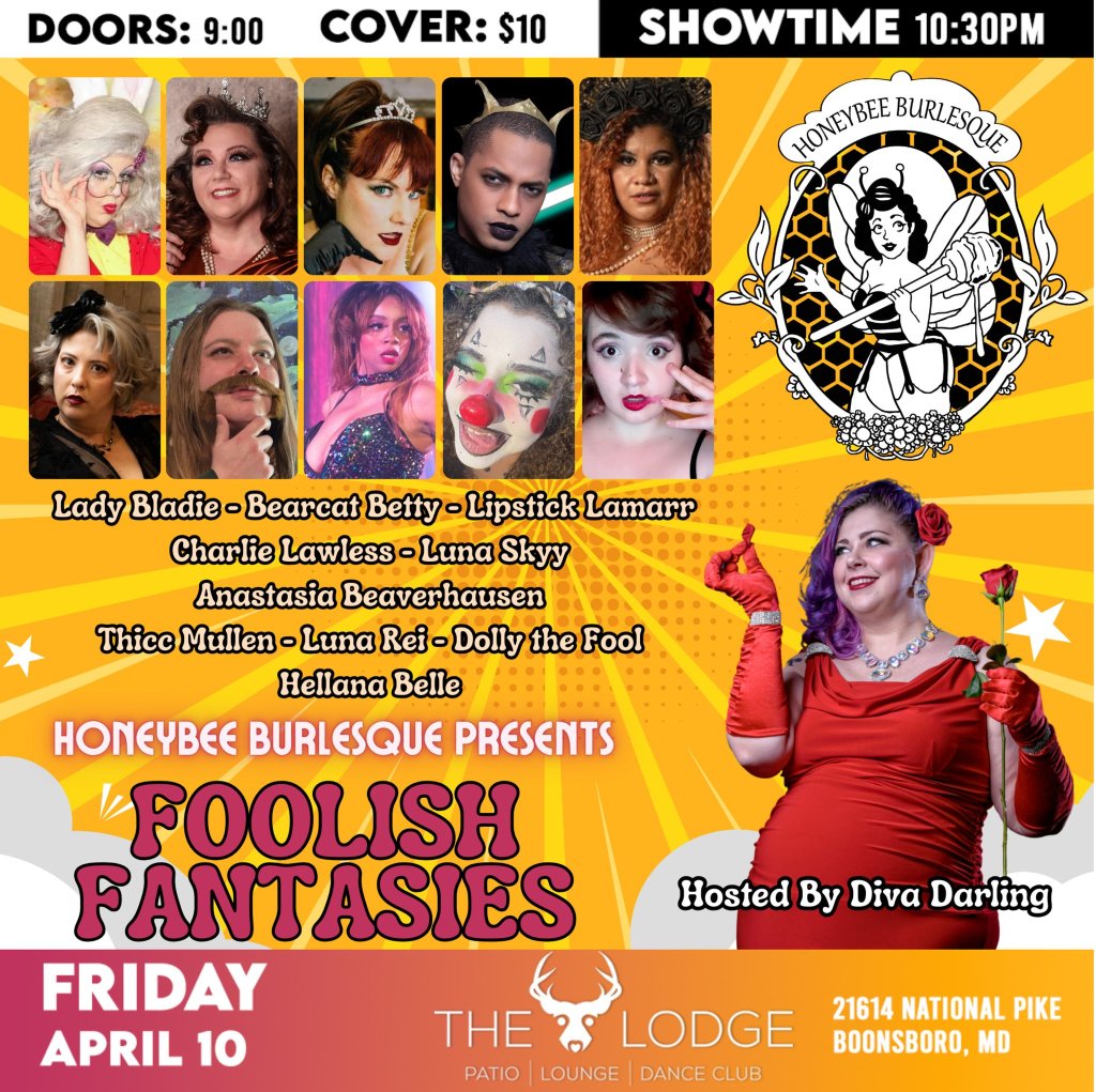 FRIDAY, April 11th: Foolish Fantasies at The Lodge in Boonsboro MD – Doors 9:00pm Show 10:30pm